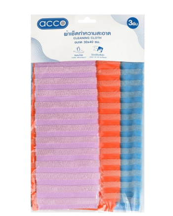 ผ้าทำความสะอาดอเนกประสงค์ ACCO 30X40cm แพ็ก 3 ชิ้น สีส้ม/ม่วง/ฟ้า